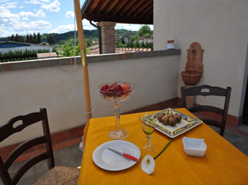 Upstairs : reached by an inside staircase, the atmosphere of red cherries will frame the panorama that extends to the surrounding hills and famous medieval towns of Anghiari and Citerna.